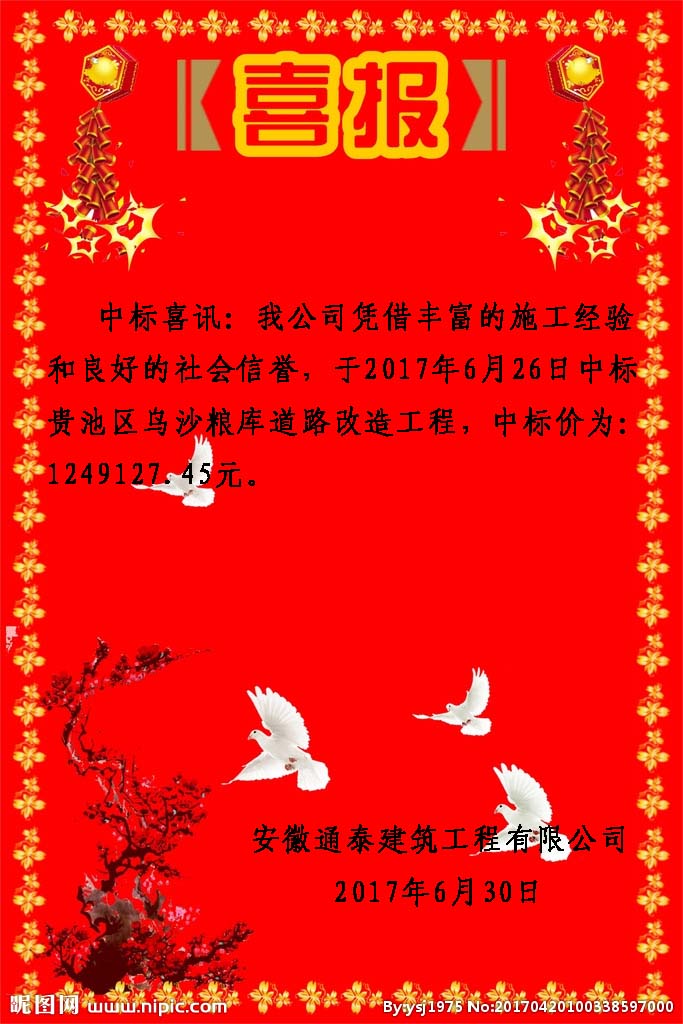 中标喜讯-贵池区乌沙粮库道路改造工程